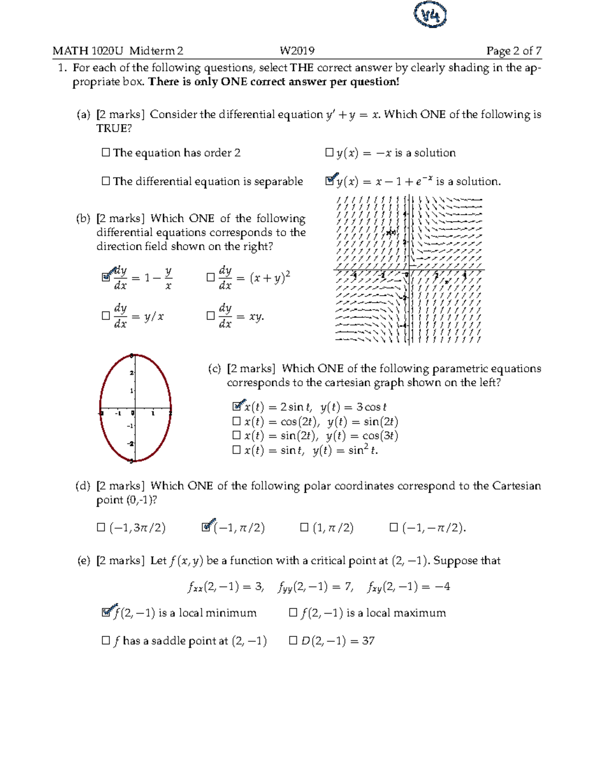 MATH 1005 G Test 3 Solutions - March 24, 2026 - Studocu