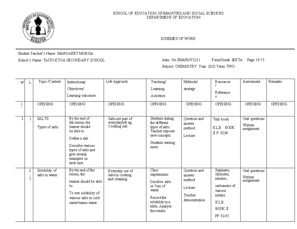 MATH-CHEM 2025 Term 2 Schemes of Work for Secondary Education - Studocu
