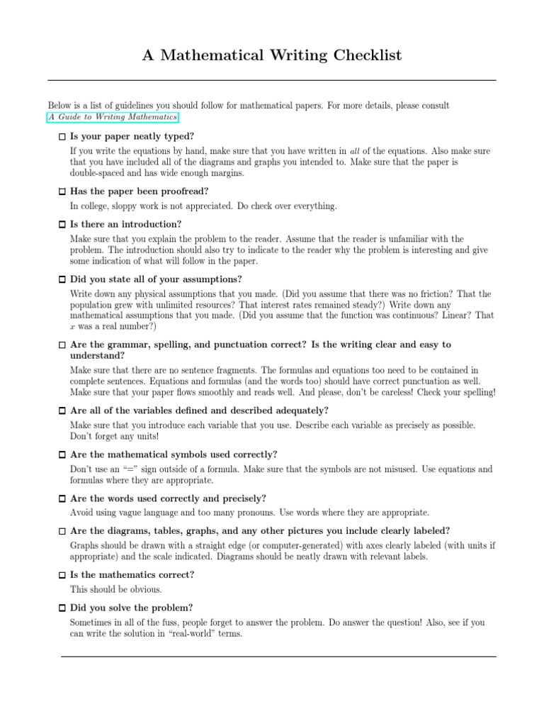 Amathematicalwritingchecklist PDF | PDF | Variable (Mathematics ...