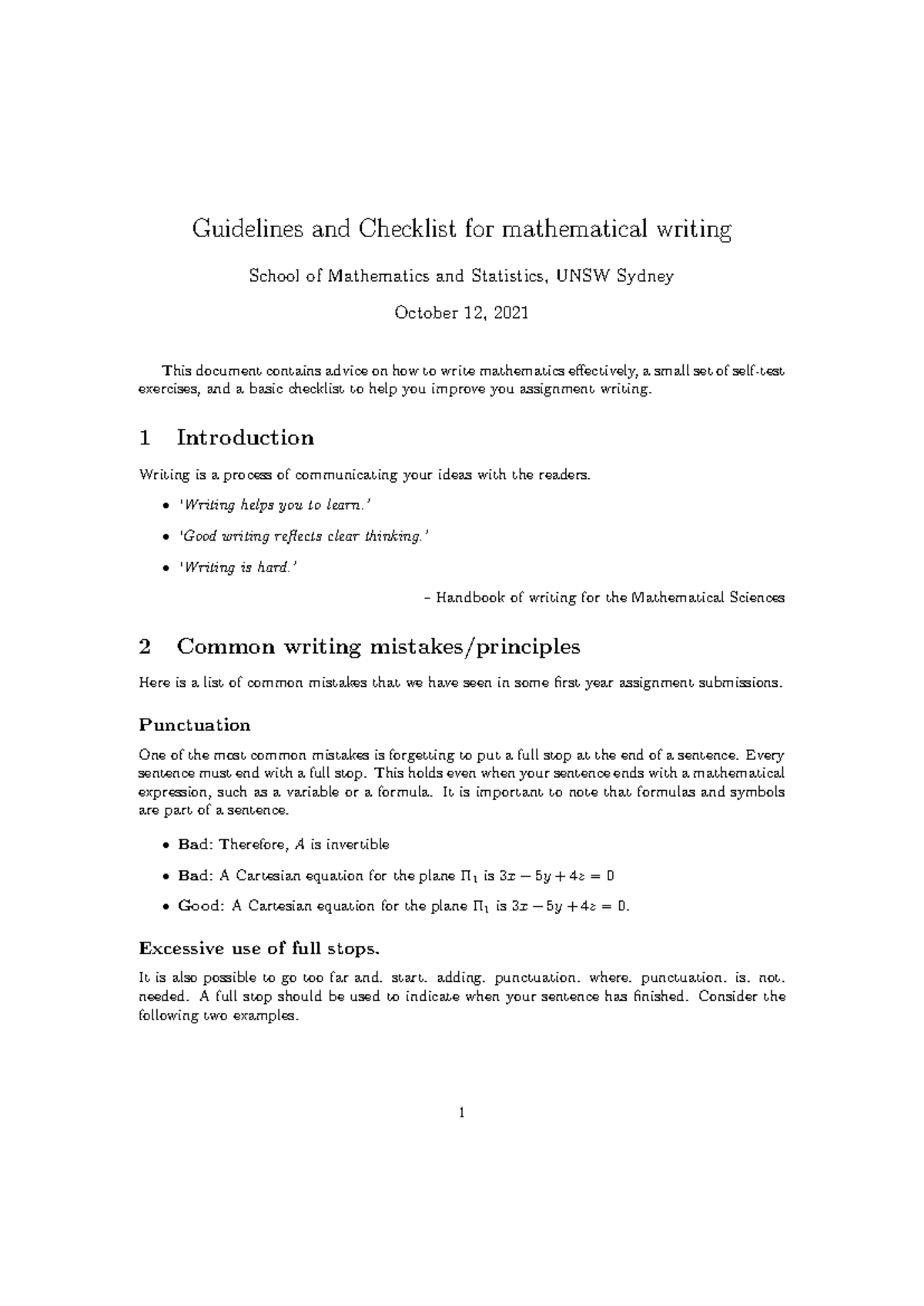 Mathematical Writing Guidelines for Effective Assignments (MATH) - Studocu