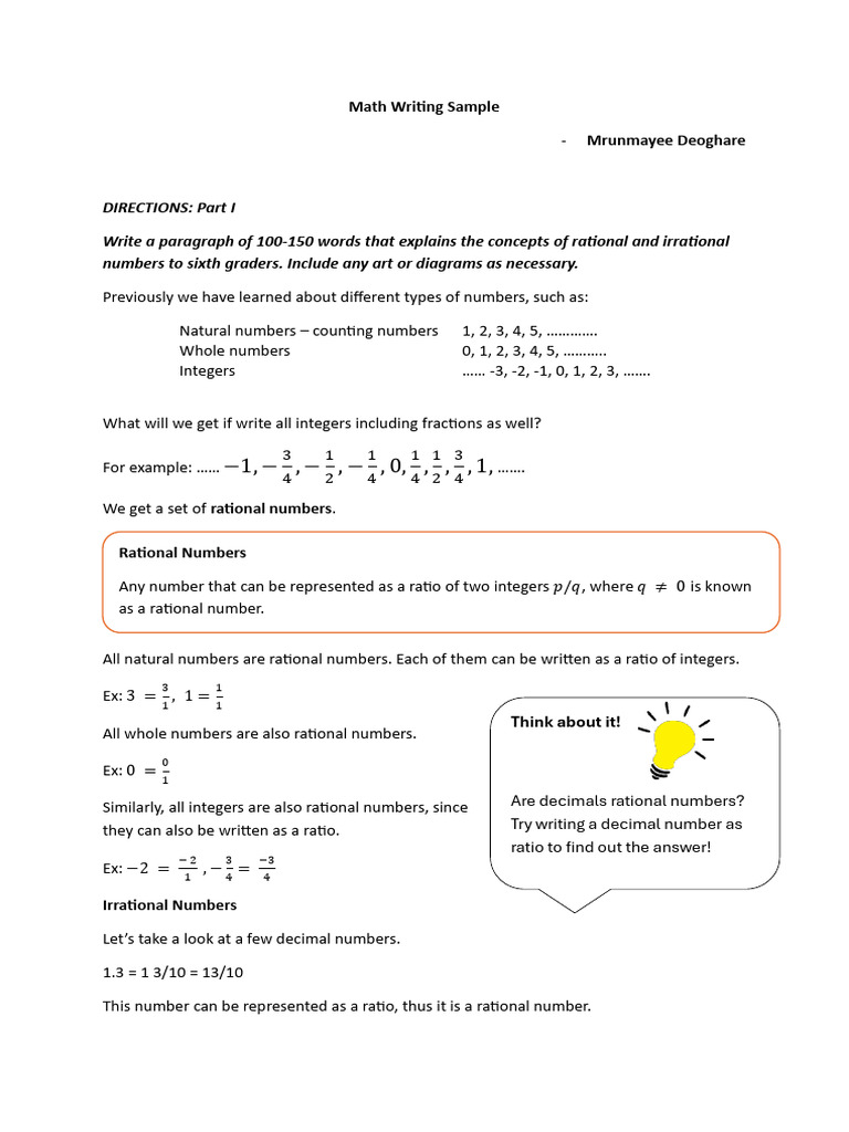 Figure . "Maria's" Completed Math Writing Template. | Download ...