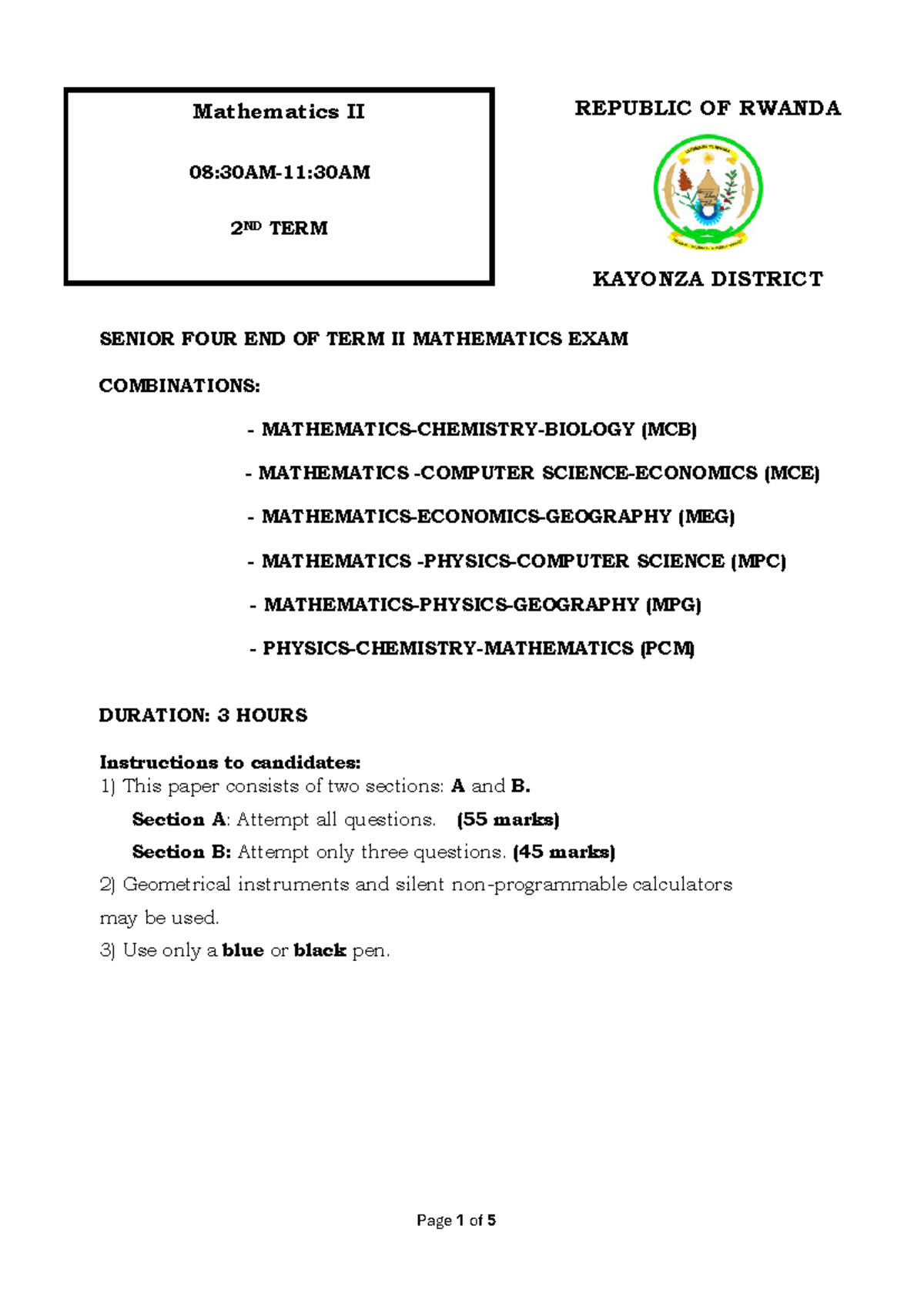 S.4 MATH II END OF TERM II EXAM - KAYONZA DISTRICT 2025 - Studocu