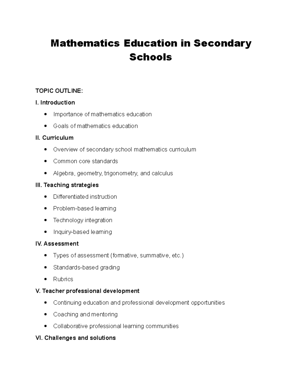 TSC Math Secondary Level Curriculum for Teaching License Examination