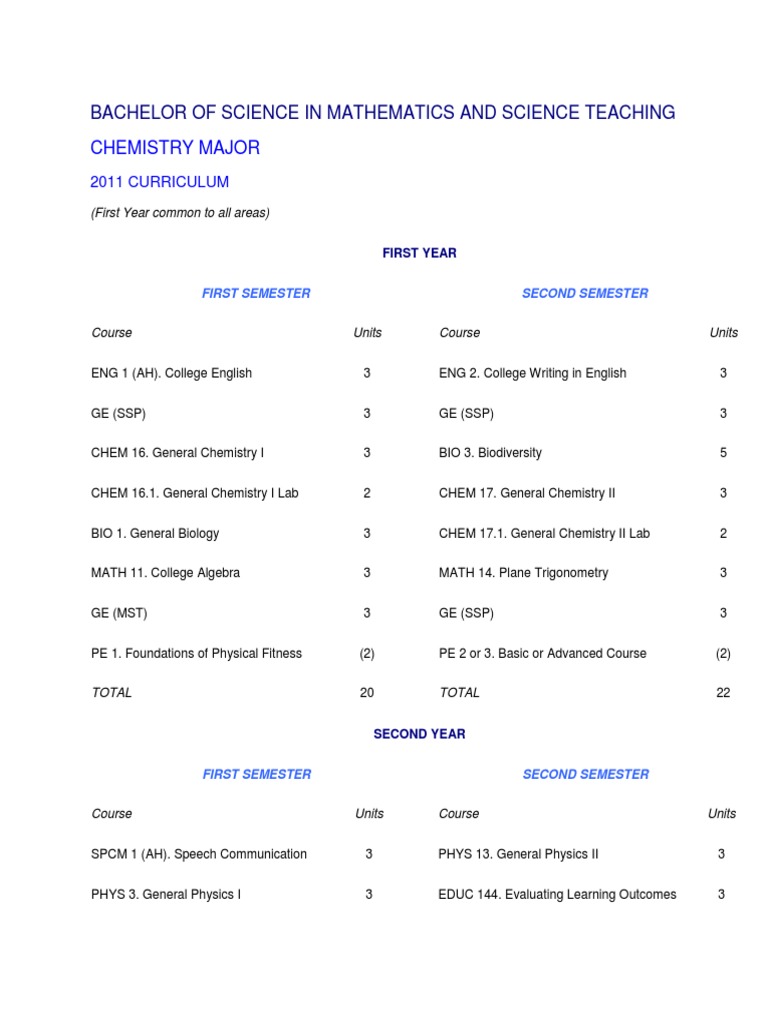 Bachelor of Science in Mathematics and Science Teaching Curriculum for ...