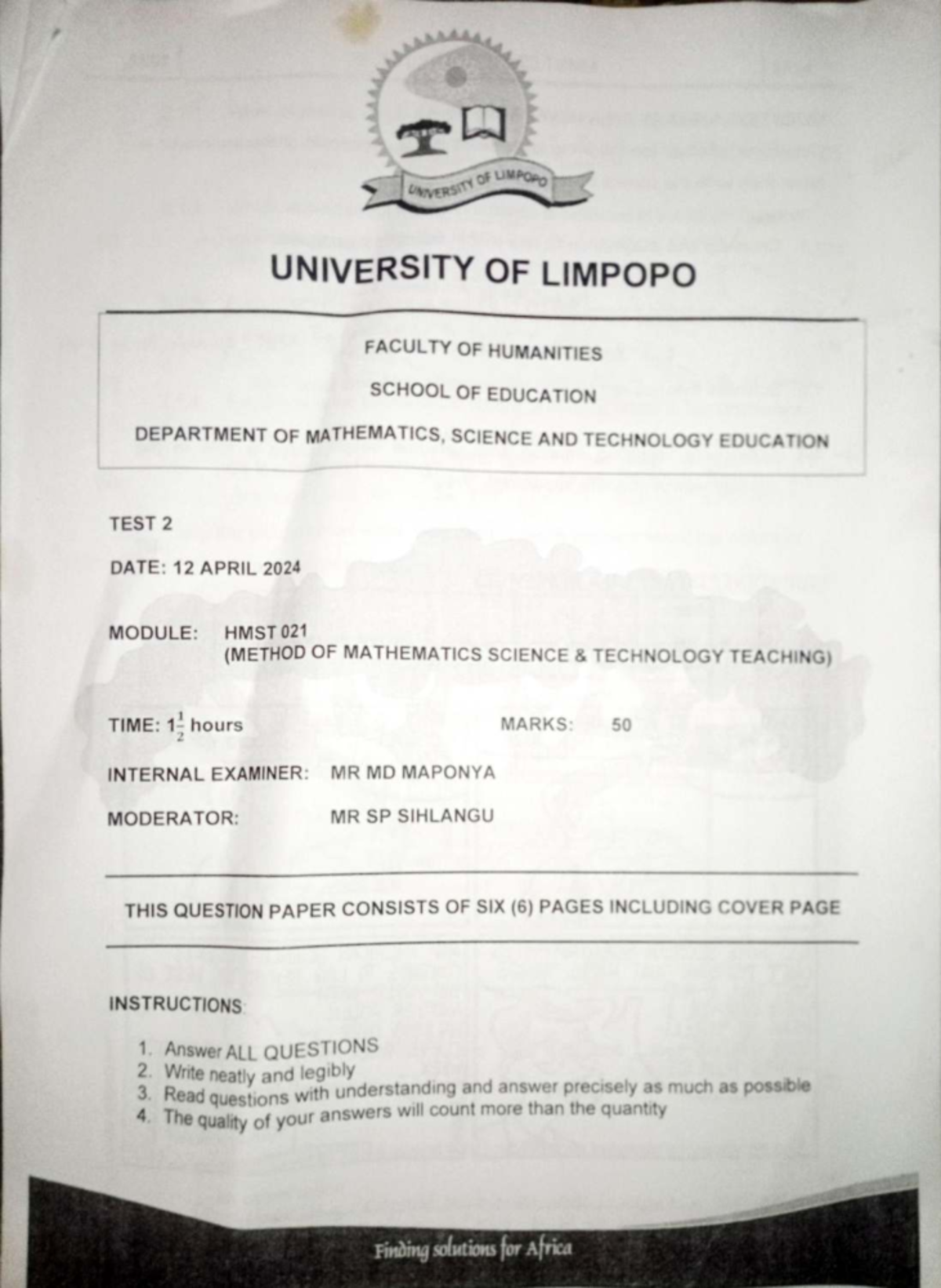 HMST 021 Test 2 - Methods of Mathematics Science & Technology Teaching ...