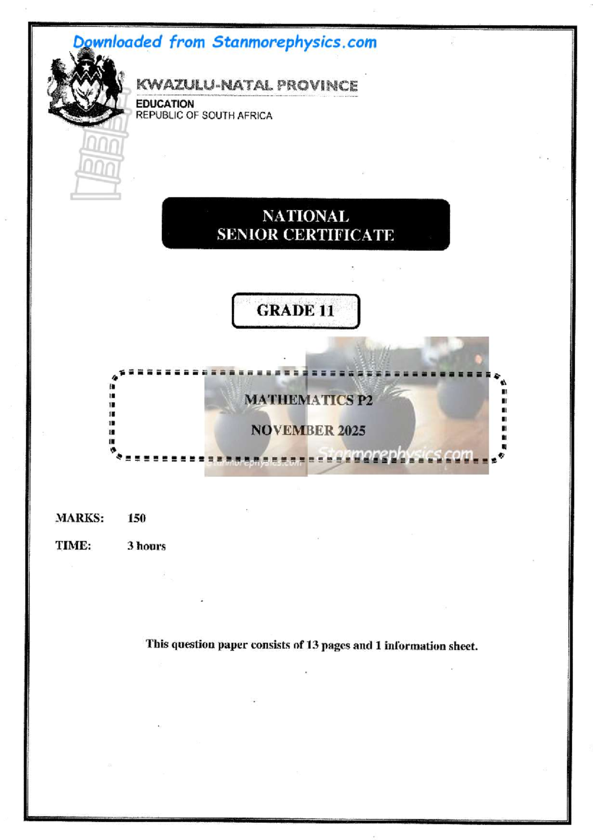 KZN Grade 11 Mathematics P2 November 2025 Exam Paper and Memo - Studocu