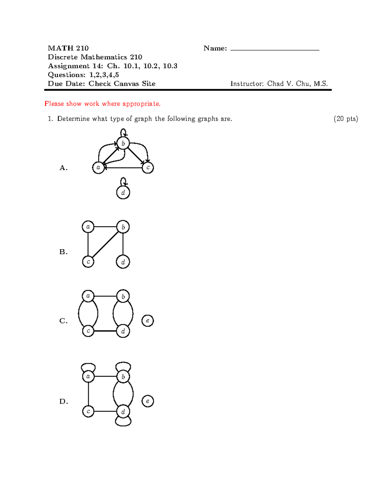 MATH 210 Discrete Mathematics Assignment 14: Graph Analysis and ...