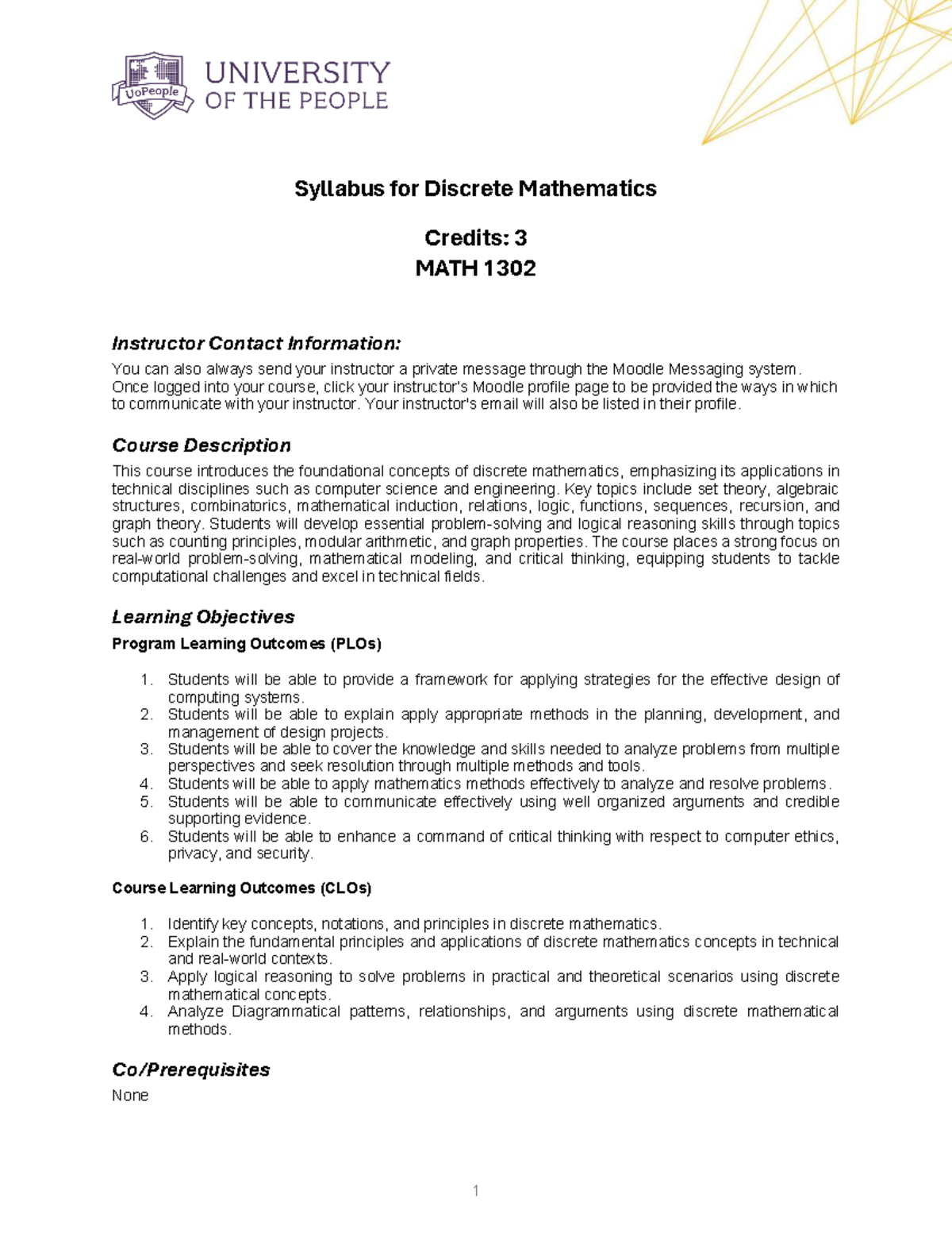 MATH 1302 Discrete Mathematics Syllabus and Course Overview - Studocu