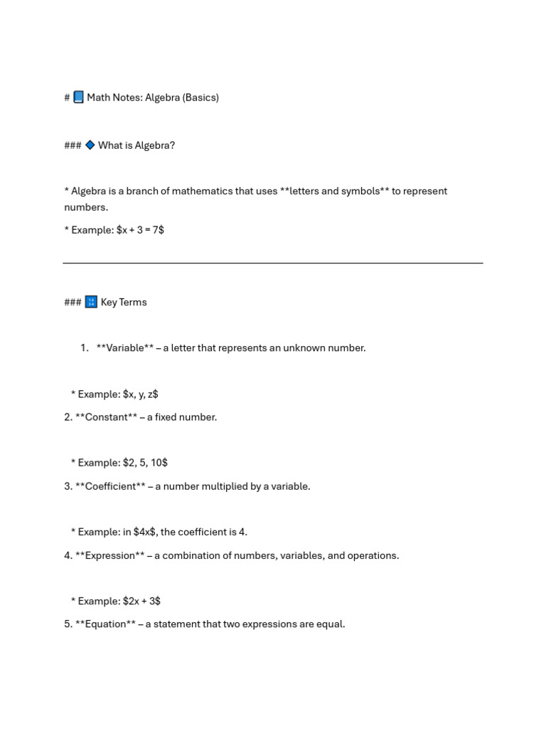Understanding Algebra: Key Concepts and Definitions Explained | Course Hero
