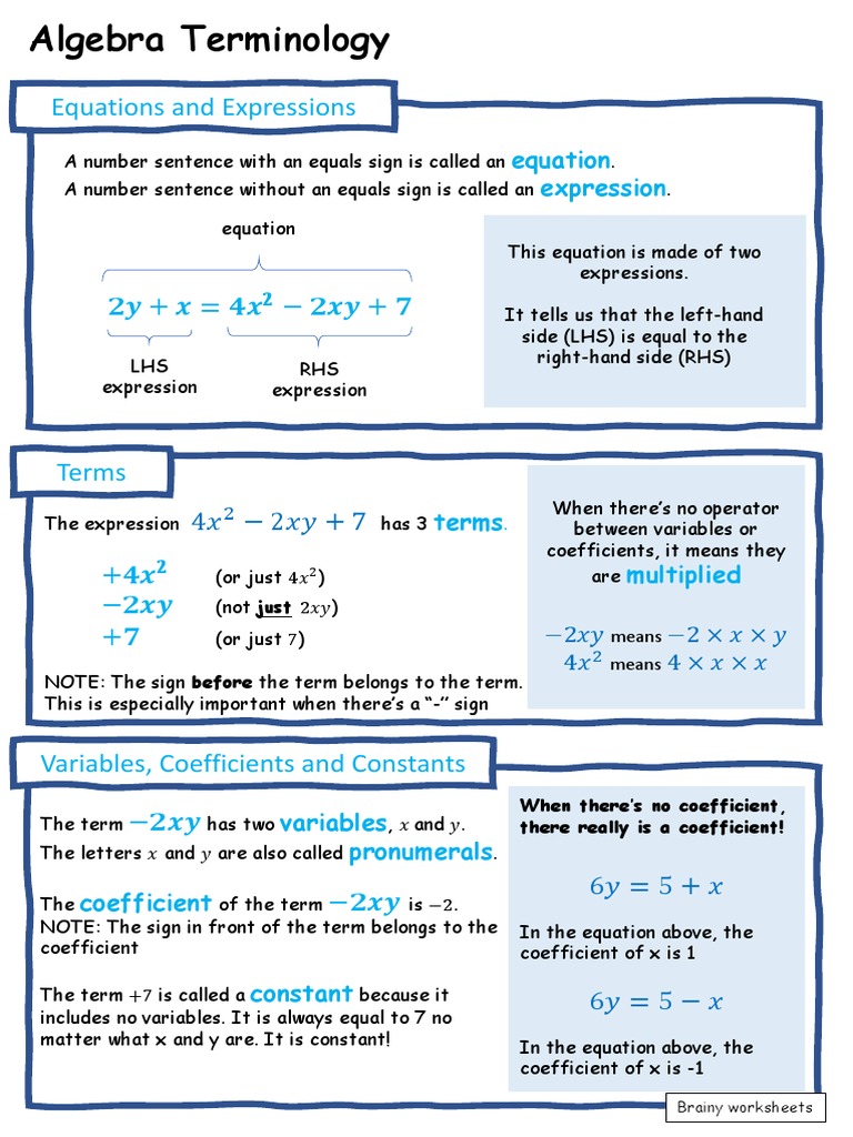 Basic Algebra Vocabulary at Numbers Mcleod blog