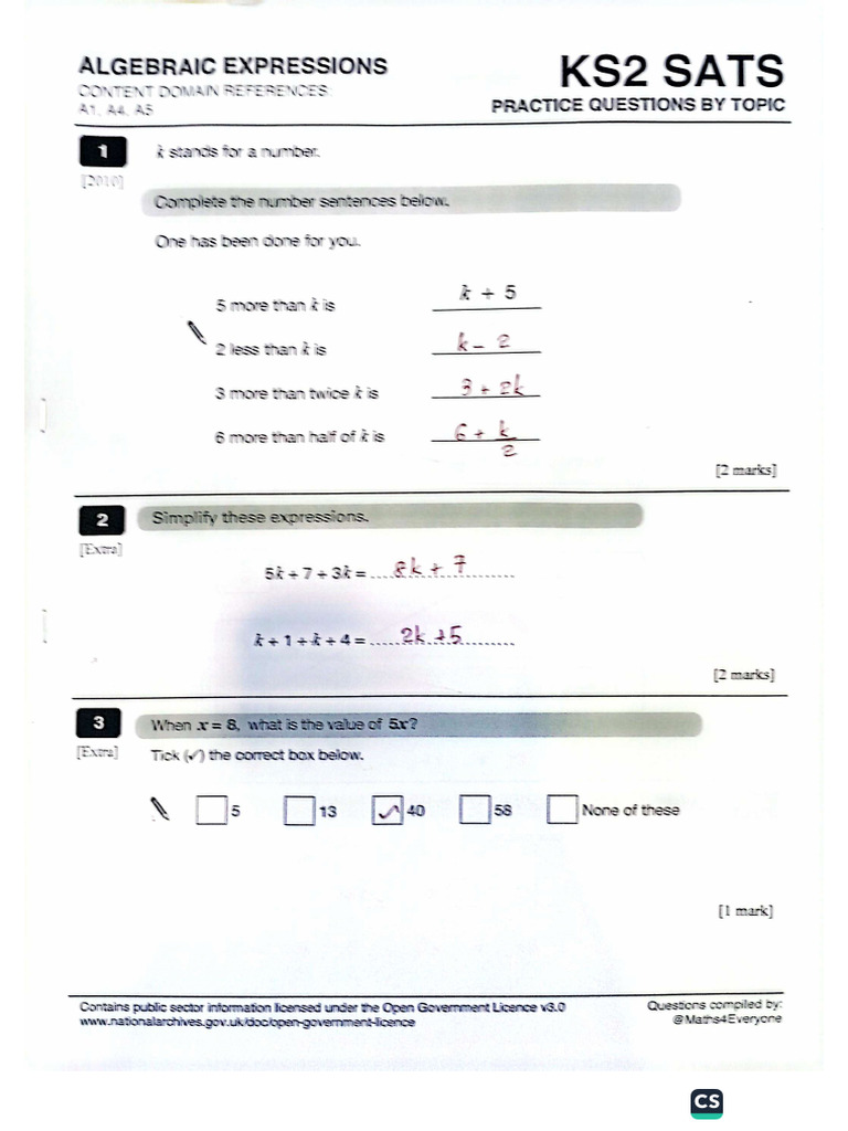 Math Worksheet Answer Key | PDF