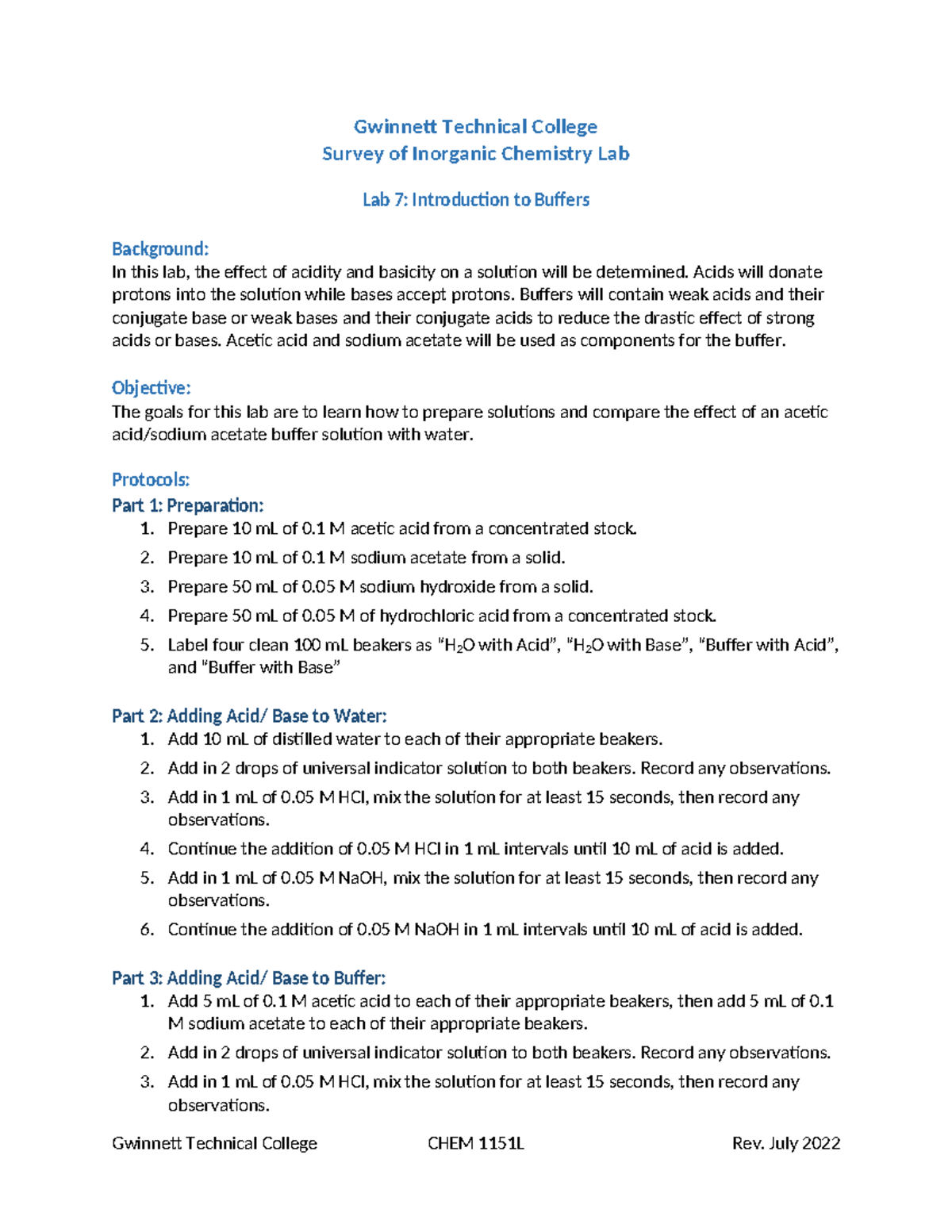 Introduction to Buffers ADA-3 - Gwinnett Technical College Survey of ...