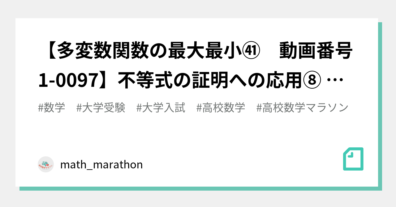 【多変数関数の最大最小㊶ 動画番号1-0097】不等式の証明への応用⑧ 早稲田大学 政治経済 1995入試 イエンゼンの不等式 解法 解説 良 ...
