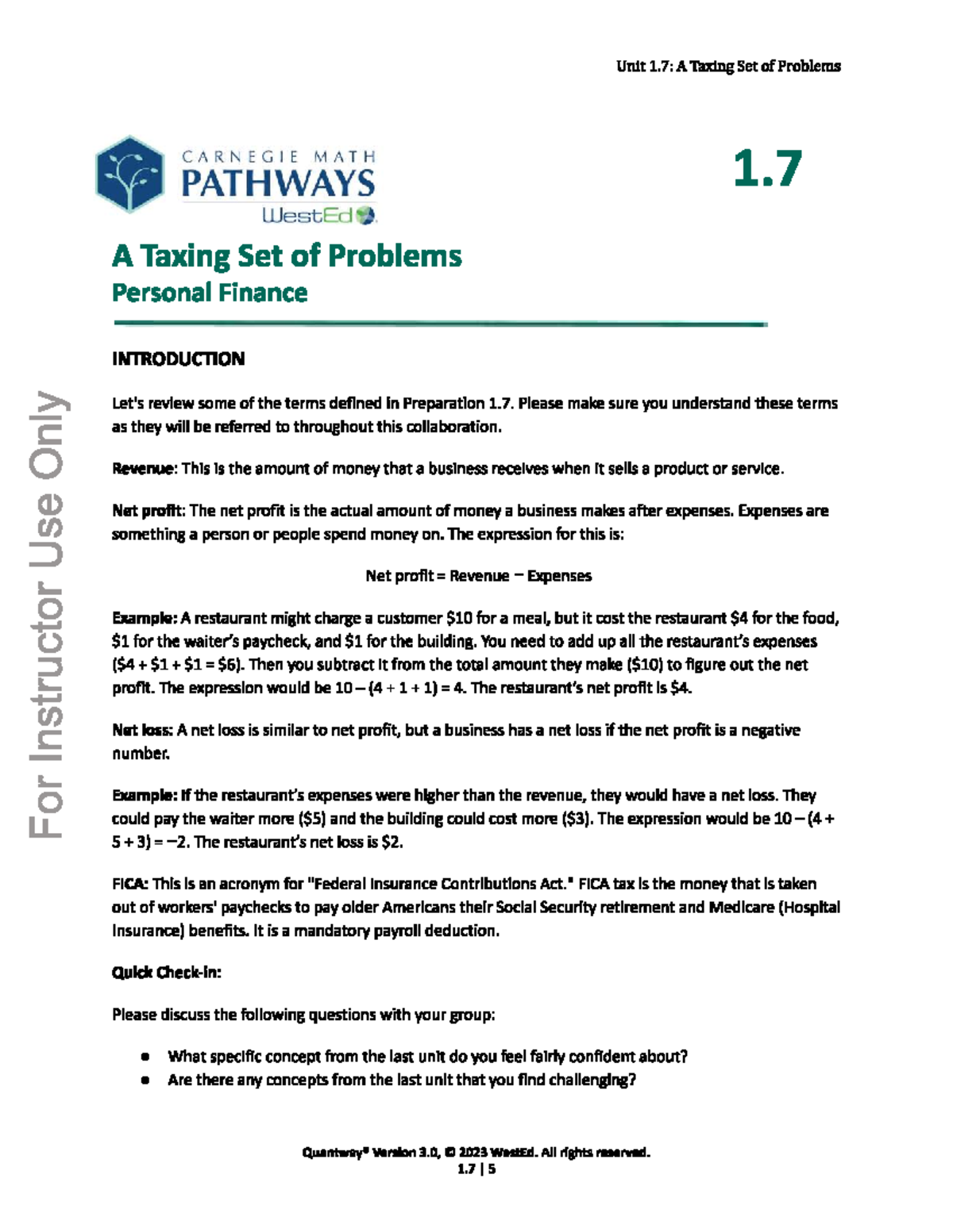 Unit 1.7: A Taxing Set of Problems - Personal Finance Overview ...