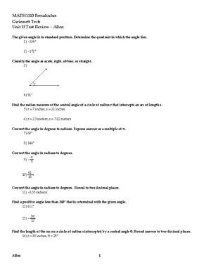 Math 1113 Unit 2 Test Review - MATH1113 Precalculus Gwinnett Tech Unit ...