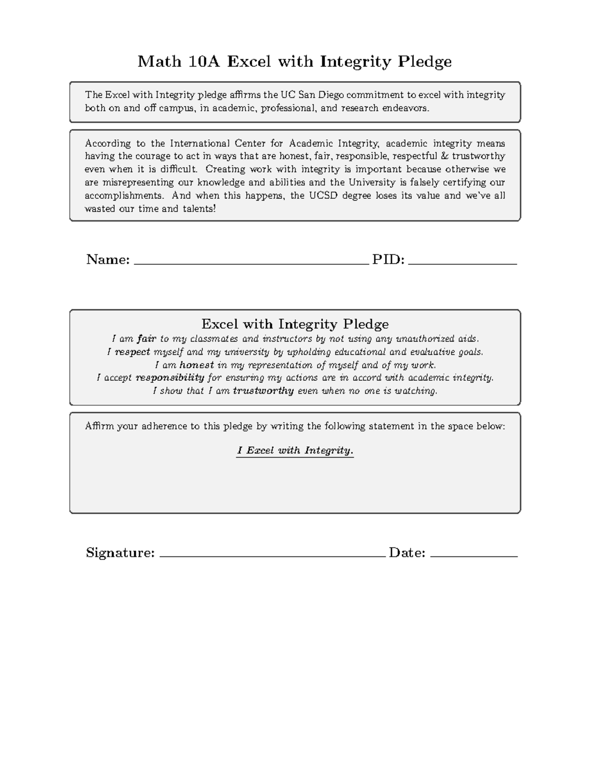 Math 10A Final Exam: Excel with Integrity Pledge - Studocu