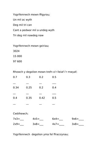 Taflen Waith Mathemateg Dewi Sant - Mathemateg a Rhifedd
