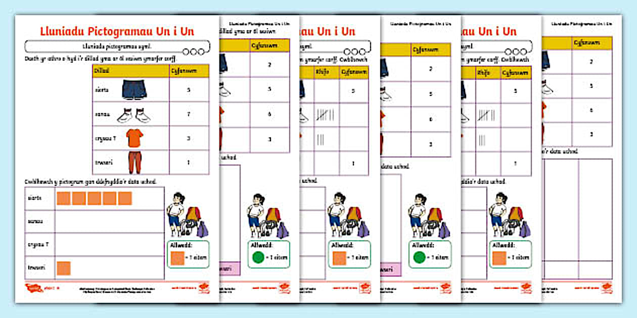 Lluniadu Pictogramau Un i Un: Taflenni Mathemateg Gwahaniaethol