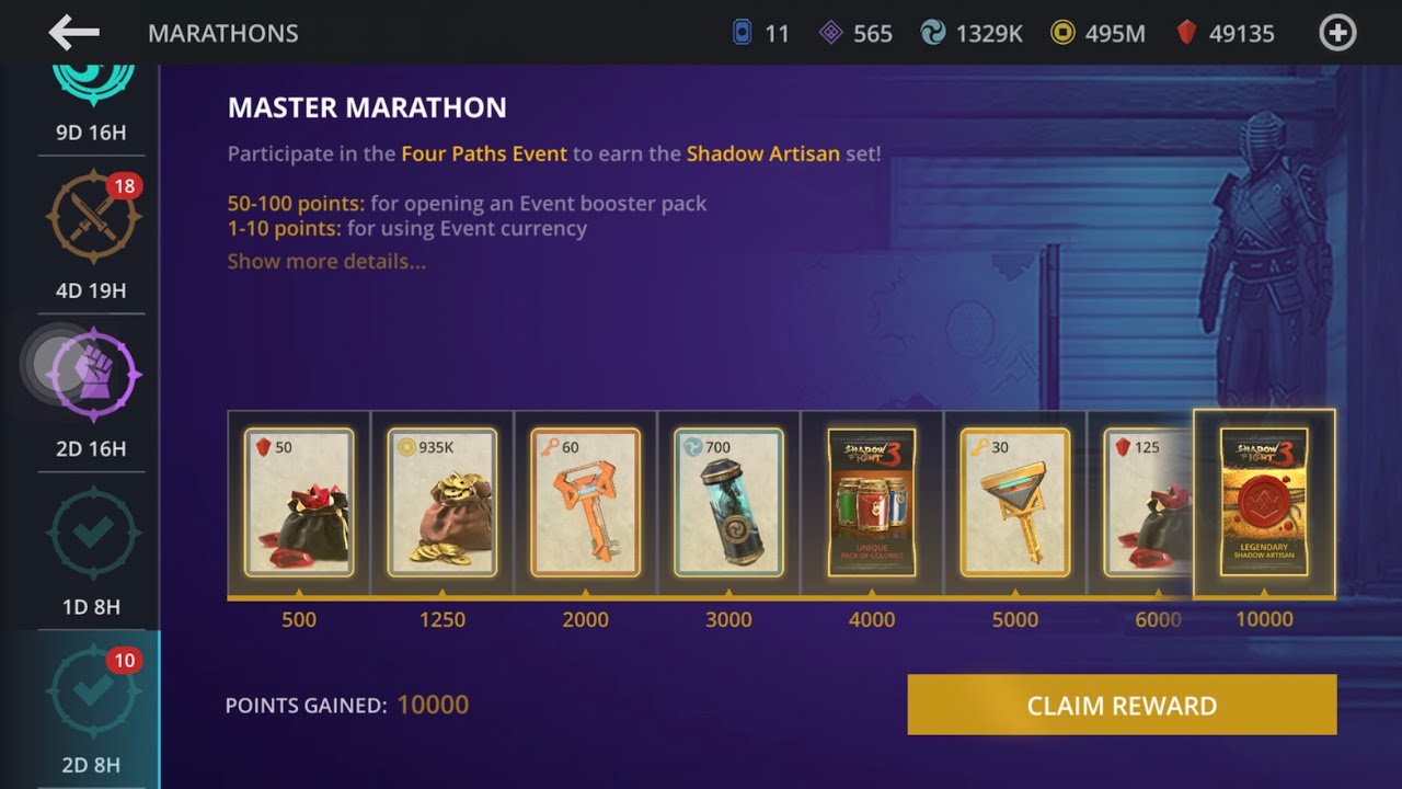 Completed Master Marathon Rewards | Four Paths Event | Shadow Fight 3 ...