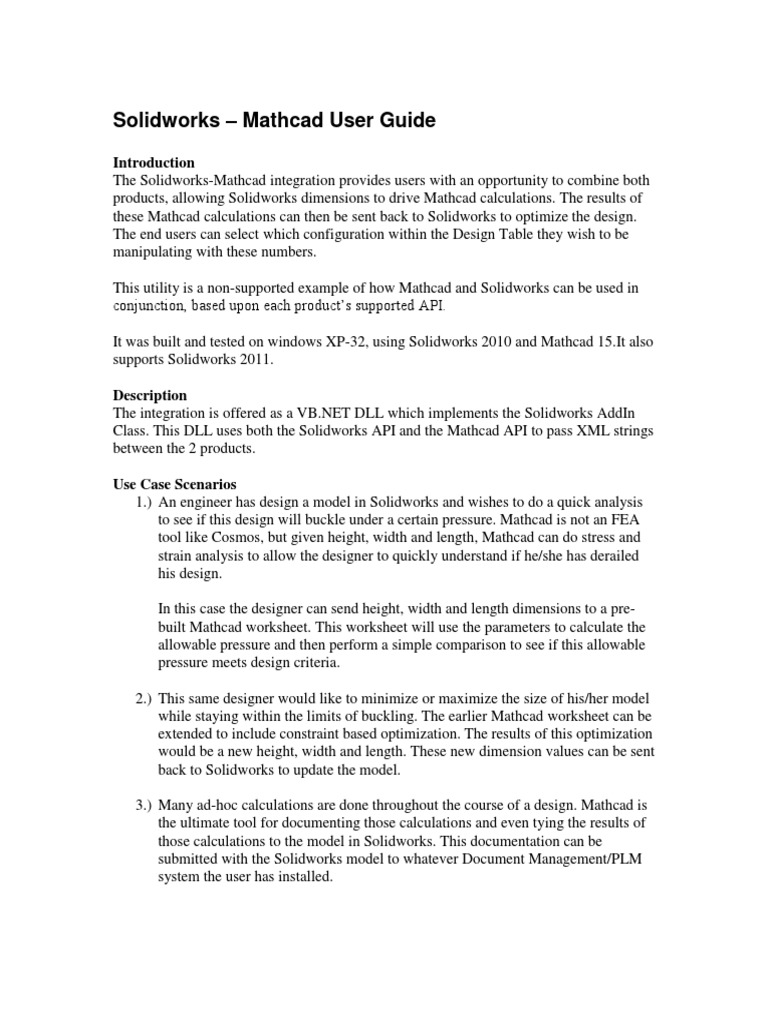 Solidworks-Mathcad Integration Install User Guide | PDF | Matrix ...