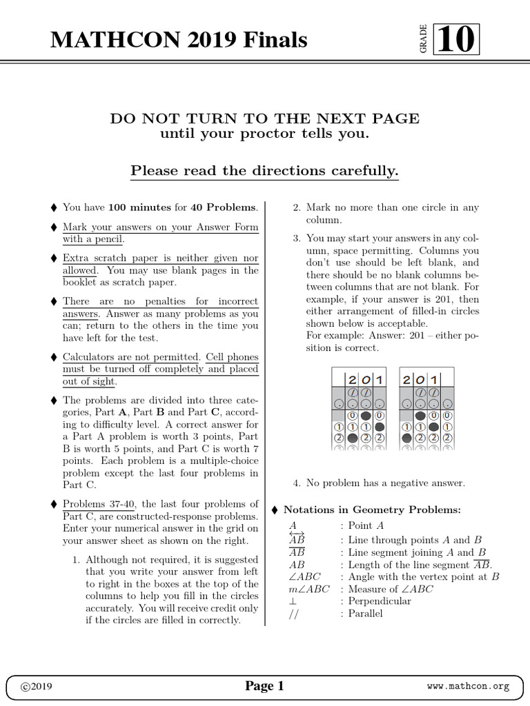 MathCon-19-Finals GR-10 Items Released | PDF | Equations | Number Theory