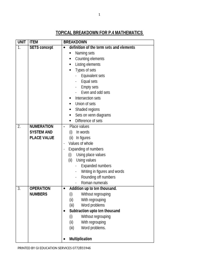 TOPICAL-BREAKDOWN-FOR-P.4-MATHEMATICS | PDF | Numbers | Set (Mathematics)