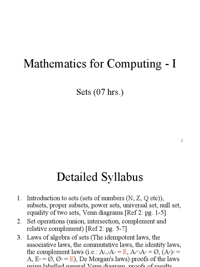 Mathematics For Computing - I: Sets (07 HRS.) | Download Free PDF | Set ...