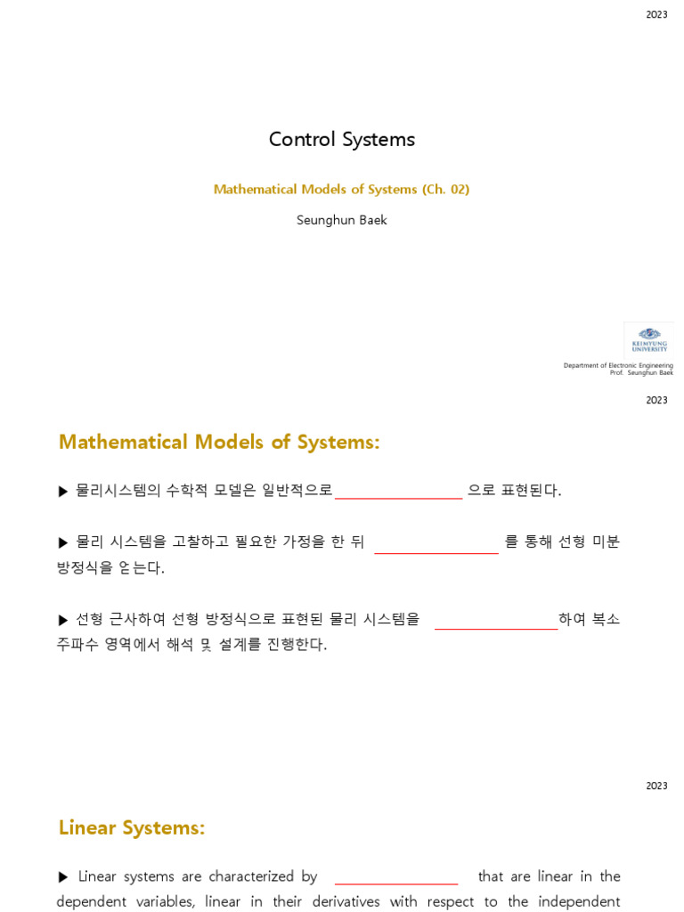 Mathematical Modelling of Control Systems | PPTX | Physics | Science