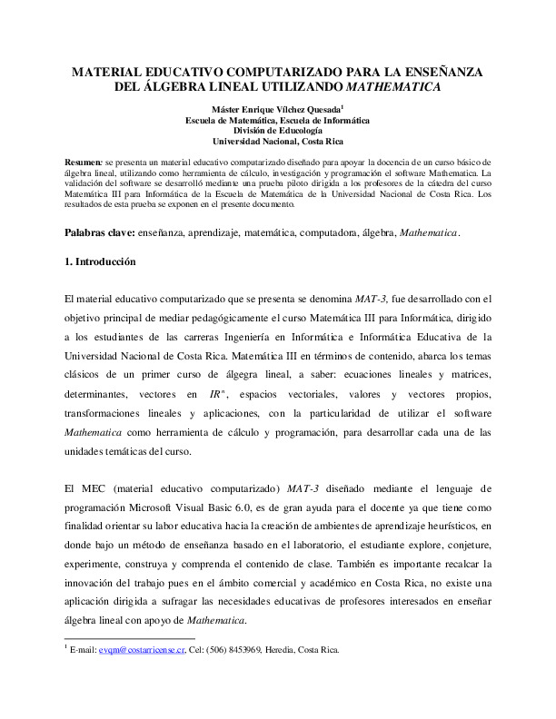 Material educativo computarizado para la enseñanza del álgebra lineal ...