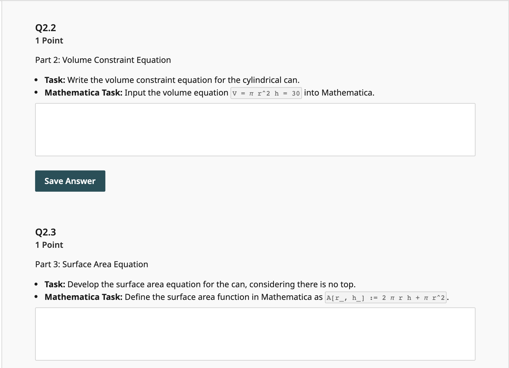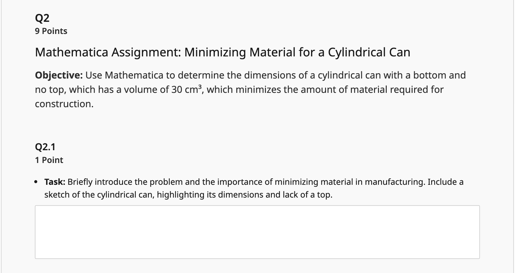 Solved 9 Points Mathematica Assignment: Minimizing Material | Chegg.com