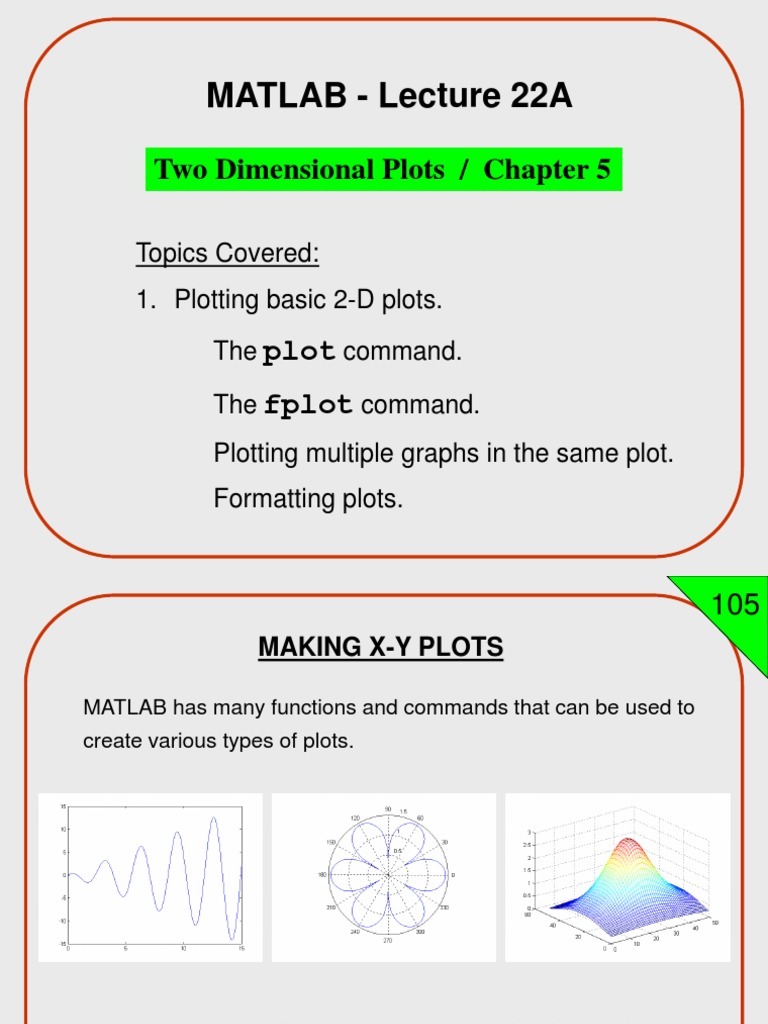 MATLAB - Lecture 22A: Two Dimensional Plots / Chapter 5 | PDF