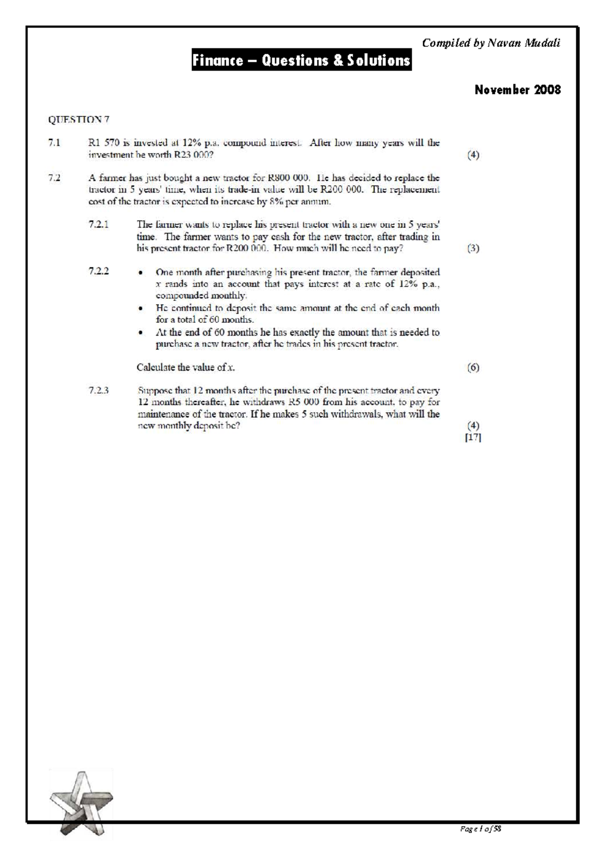 Navan Mudali Finance Questions & Solutions (2008-2011) - Studocu