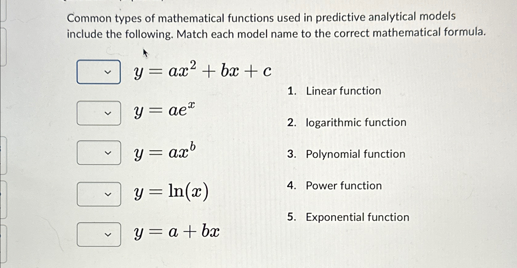 Solved Common types of mathematical functions used in | Chegg.com