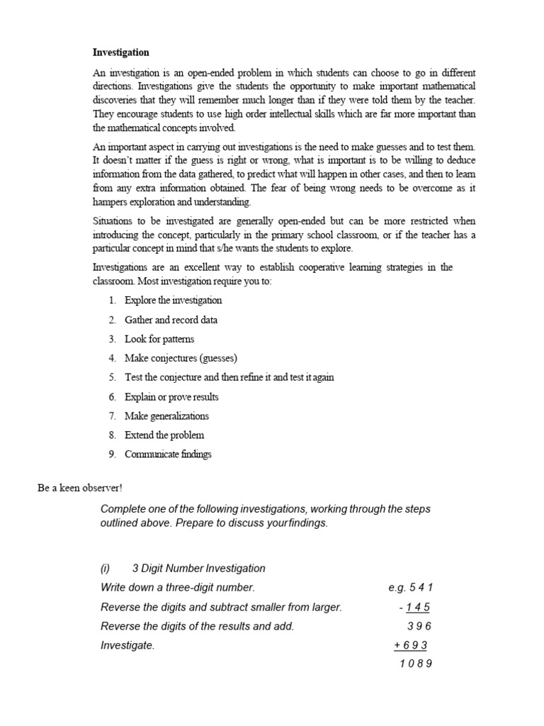 Understanding Mathematical Investigation | PDF | Teaching Mathematics ...