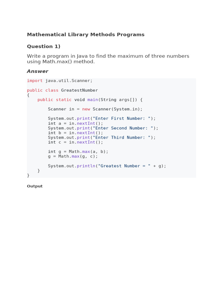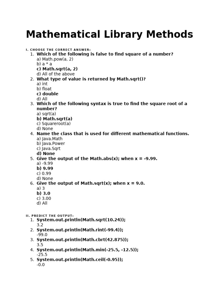 Java Math Library Quiz & Examples | PDF | Integer (Computer Science ...