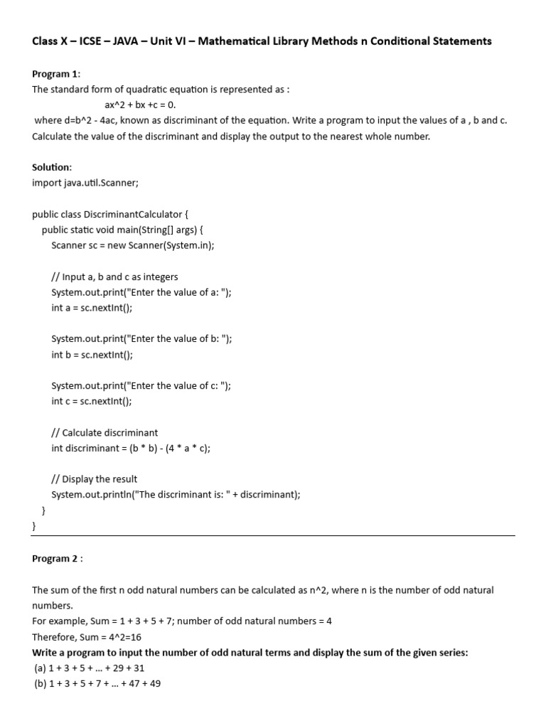 X-ICSE - Unit VI N VII-Mathematical Library Methods N Conditional ...