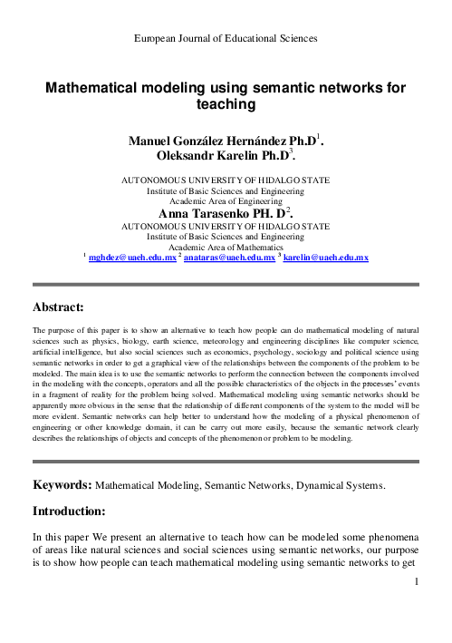 (PDF) Mathematical Modeling Using Semantic Networks for Teaching
