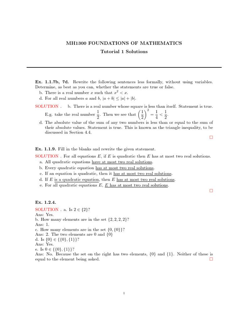 (MATH) Tutorial 1 - TUTO 1 - Foundation of Mathematics for Scientists ...