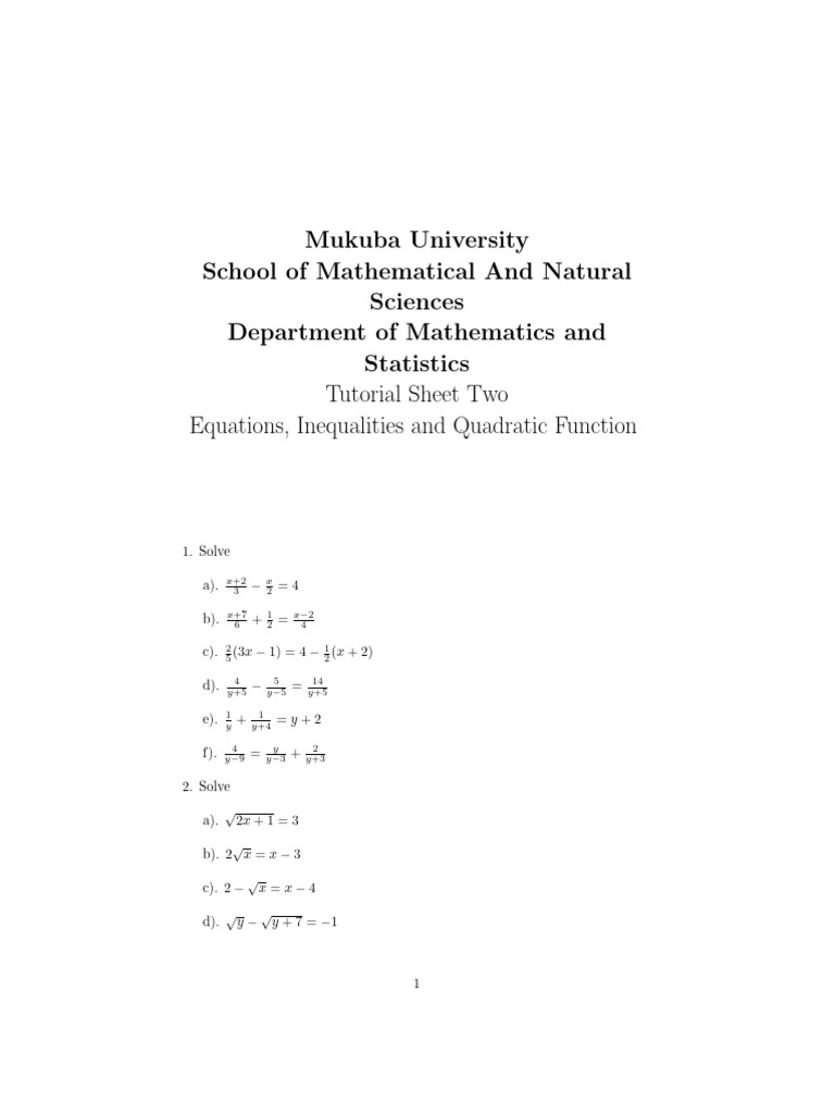 Mat 1100 Tutorial Sheet 1 | PDF | Mathematics | Abstract Algebra