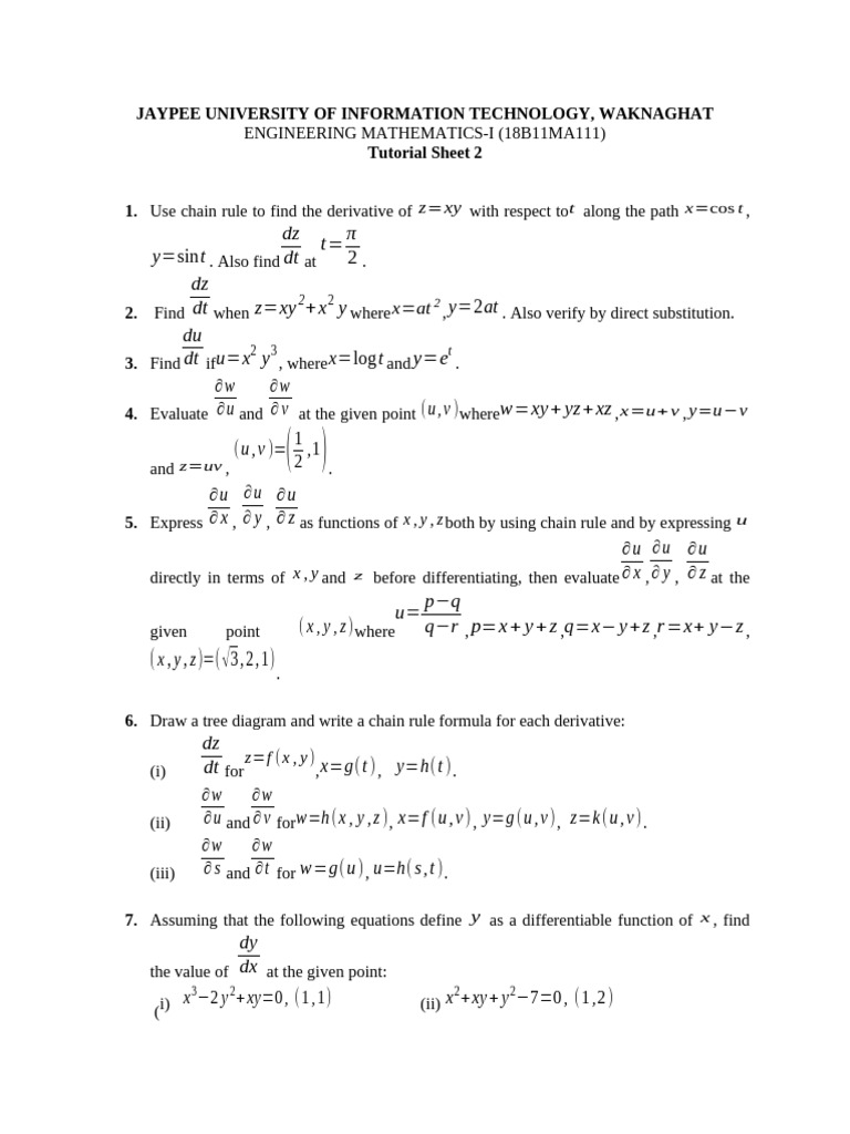 Tutorial 1 - Mathematics 2 (BE) | PDF