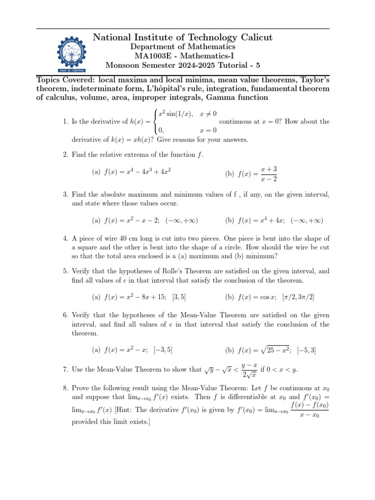 Tutorial 12 | PDF | Mathematical Analysis | Calculus