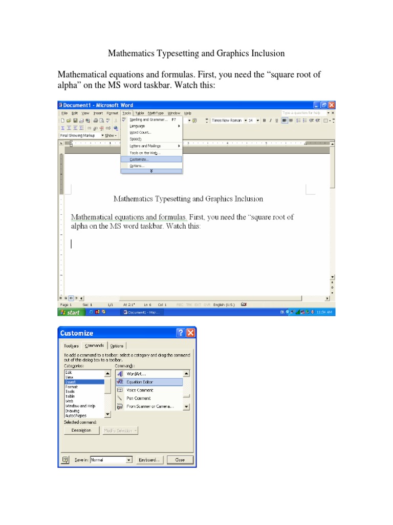 Mathematics Typesetting and Graphics Inclusion Mathematical Equations ...