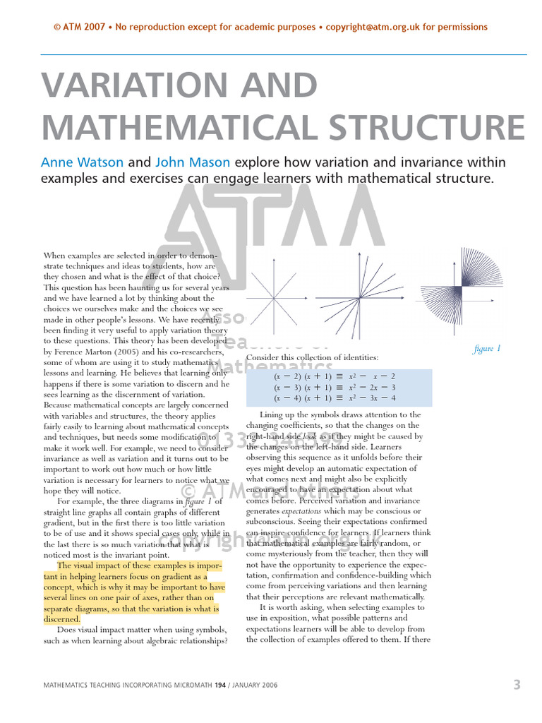 Variation and Mathematical Structure | PDF | Mathematics | Cognition