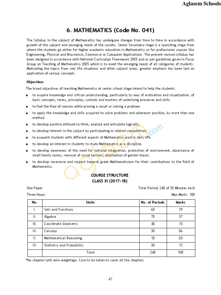 MATHEMATICS (Code No. 041) : Objectives | PDF | Matrix (Mathematics ...