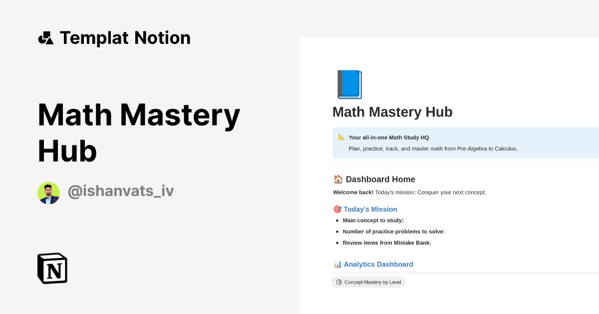 Math Mastery Hub Templat oleh Ishan Vats | Notion Marketplace