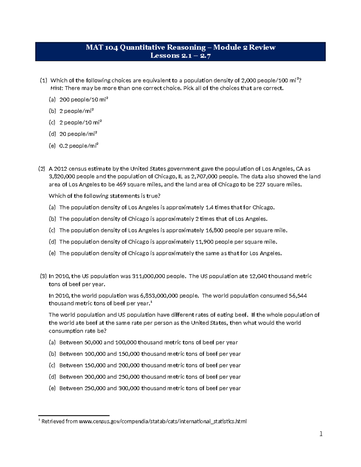 MAT 104 Quantitative Reasoning Module 2 Review Questions and Answers ...