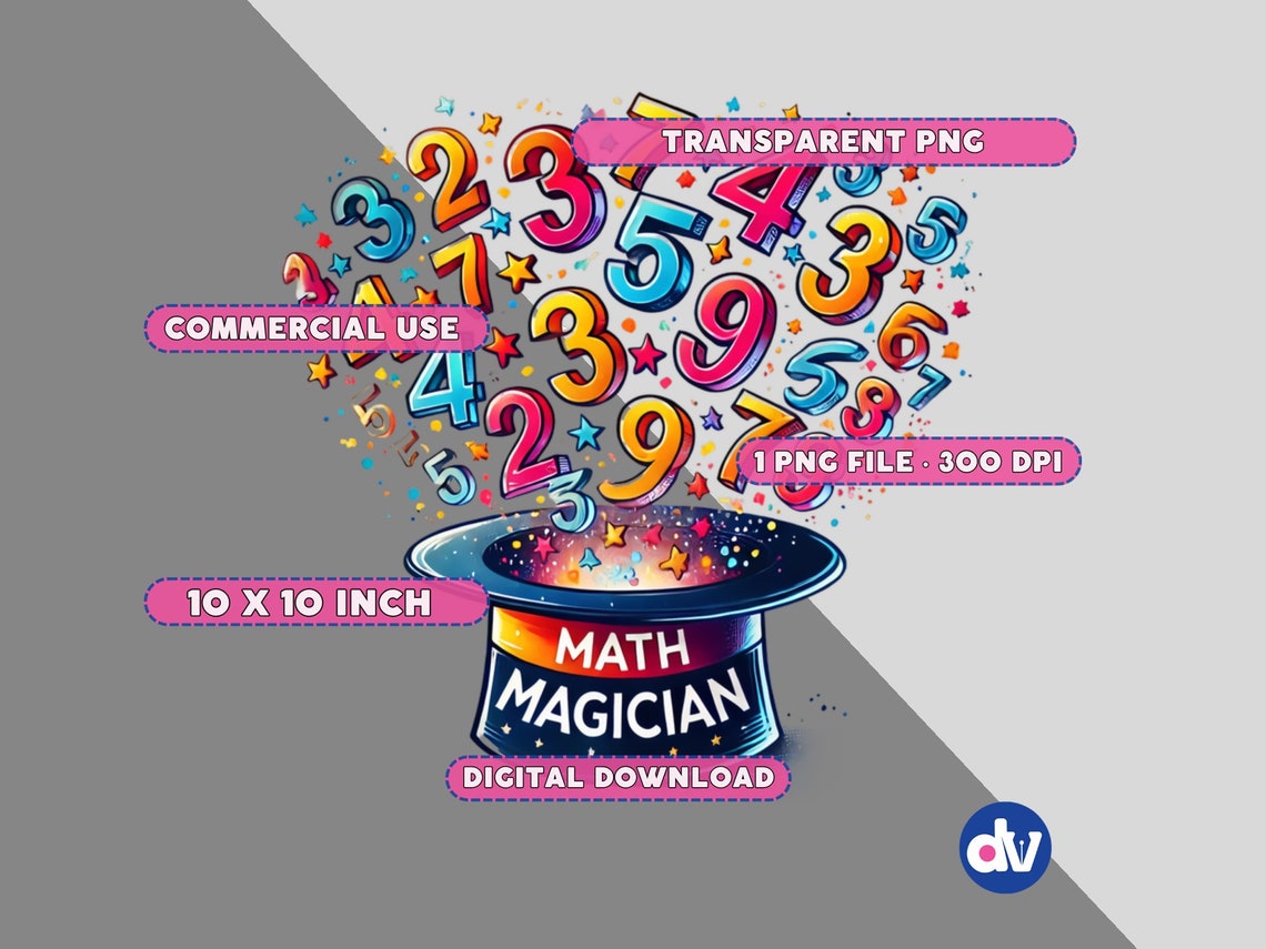 Math Magician Clipart – Colorful Numbers, Teacher Design (PNG Digital ...