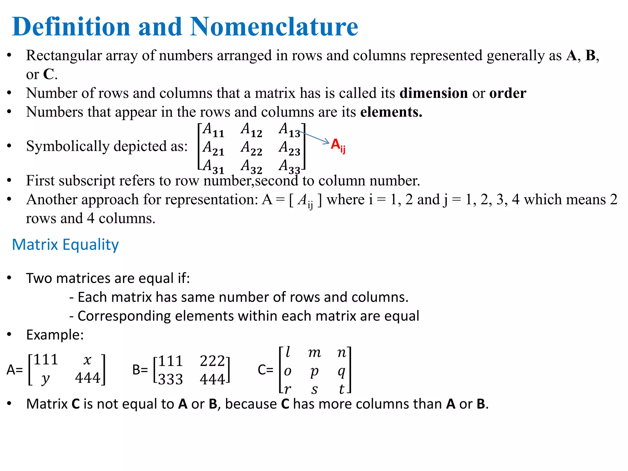 PPT - The matrix is an ordered set of numbers arranged in rows and ...