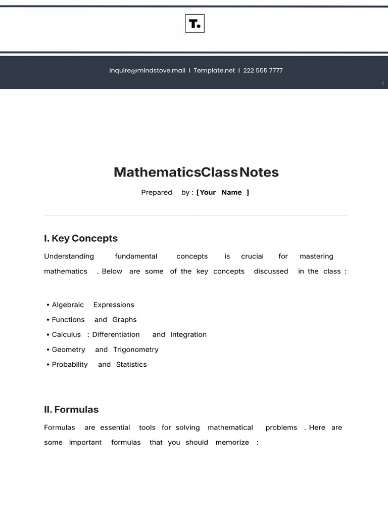 Free Mathematics Class Notes Template | PDF