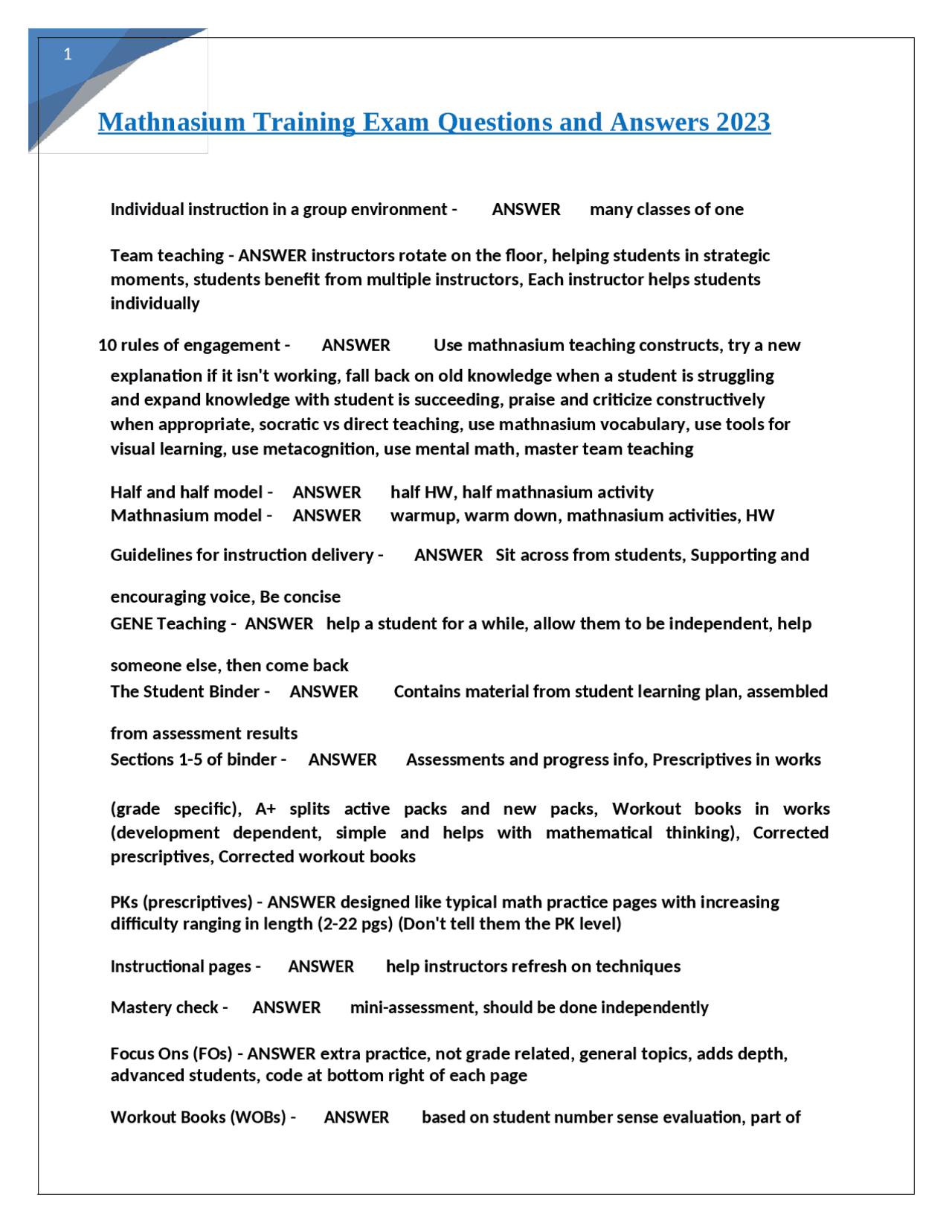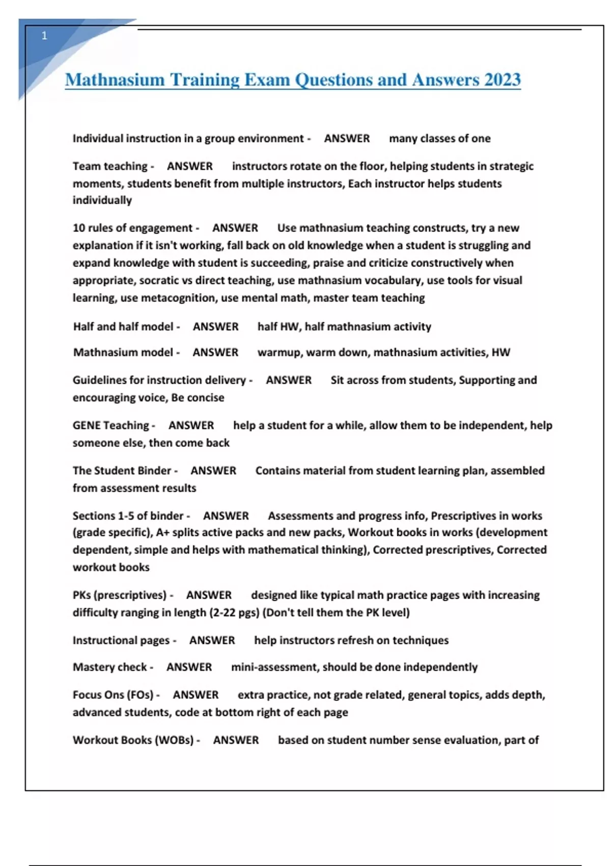 Mathnasium Part 1 Training UPDATED ACTUAL Exam Questions And CORRECT ...